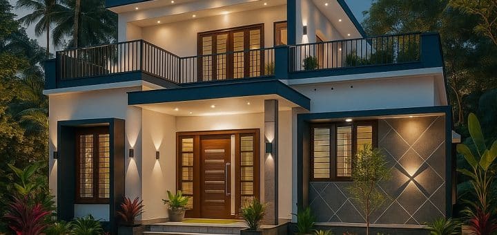 - Design Style: Contemporary elevation with clean lines and large glass openings for natural light