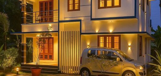 This kerala style single floor plan designed to be built in 1150 square feet(106 Square Meters) . It includes 3 bedrooms with the combination of attached bathrooms and a common bathroom. This plan is a single floor which makes out a distinctive and unique design. It is estimated for about 17 lac’s. The living and dining room are very well designed. This plan is designed in a manner for the latest interior designs.